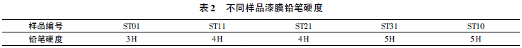 铅笔硬度直接影响到粉末涂料的应用,表2为不同样品漆膜的铅笔硬度值。